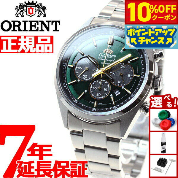 11月下旬入荷予定予約受付中 正規品 7年保証キャンペーン 送料無料 オリエント ネオセブンティーズ ソーラーパンダ クロノグラフ アナログ メンズ 腕時計 WV0031TX ORIENT NEO70's SOLAR PANDA ブリリアントグリーン 70年代の機械式時計のテイストを現代的にアレンジしたオリエントのヤングカジュアルシリーズ、ネオセブンティーズ。インデックスにケースリングを重ねることで立体感溢れる印象に仕上げました。デザインのアクセントに、70年代に多く使用されており、機能性も優れたT字型プッシュボタンを採用。カジュアルファッションにはもちろん、視認性も優れており、スーツスタイルでもお使いいただけます。 発売日:16年3月発売 メーカー希望小売価格はメーカーサイトに基づいて掲載していますオリエント 腕時計 ORIENT ネオセブンティーズ WV0031TX ソーラー クロノグラフ 時計 防水 品番WV0031TX駆動方式ソーラー(KSB00)素材:ケースステンレススチール素材:ベルトステンレススチール(ピン式)風防クリスタルガラス文字盤カラーブリリアントグリーンベルトカラーシルバーサイズ(縦×横×厚)約49×42×12mmかん幅約21mmベルト腕周り約14-20cm重さ約129g仕様日常生活用強化防水(10気圧)平均月差±15秒クロノグラフ(60秒・60分計)駆動期間:フル充電約6ヶ月日付表示24時間表示スモールセコンドルミナスライト日本製付属品保証書・専用ボックス※環境負荷低減の取り組みの一環として、取扱説明書はデジタル化となりました。詳細は付属のシートをご確認ください。保証メーカーにて一年保証