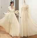 レディース ネグリジェ ロング丈 ワンピース パジャマ 長袖 胸パッド入り お姫様 ルームウェア ナイトドレ スペンタゴン・ネック 柔らかい チュール ウエスト締め 花のレース 優しい 杏色 白 部屋着 外で着用可能 M L XL