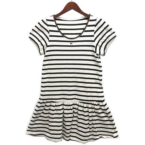 【中古】フランシュリッペ franche lippee ねこ リボン ボーダー パフスリーブ ワンピース 膝丈 半袖 オフホワイト ブラック MS レディース 【ベクトル 古着】 240426