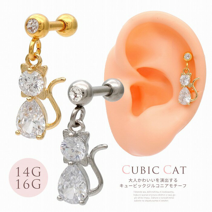 【全品送料無料】 軟骨ピアス 14G 16G ボディピアス かわいい キャッチ チャーム サージカルステンレス 金属アレルギー 猫 ネコ ねこ ジュエル アニマル ストレートバーベル 個性 キラキラ おしゃれ セカンドピアス メンズ 軟骨 ピアス ボディーピアス なんこつぴあす