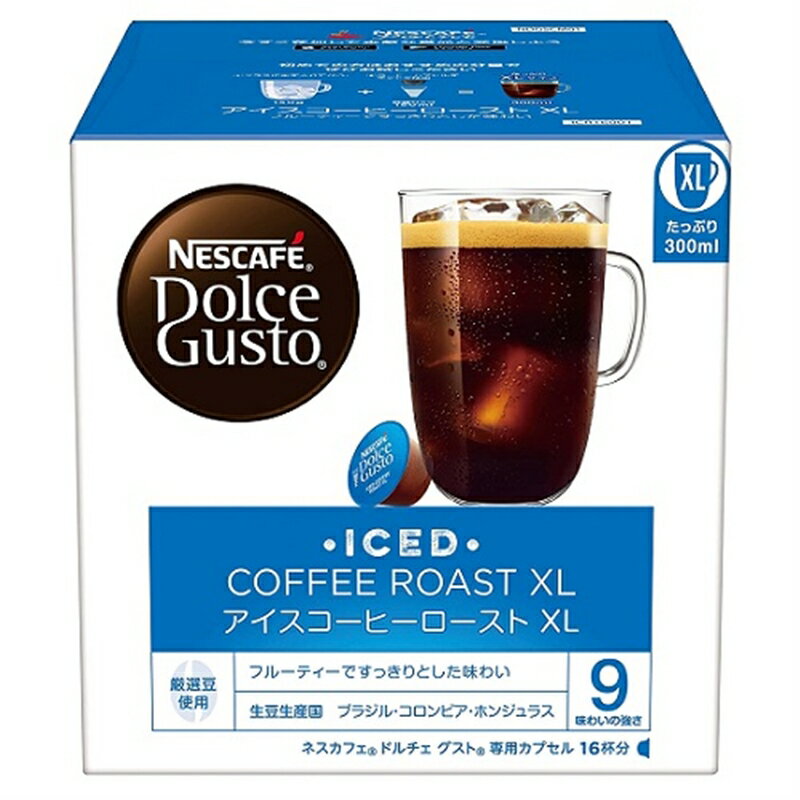 ・メーカー純正・マイボトルにぴったりな大容量サイズ・カフェで味わうような淹れたてのアイスコーヒーをおうちで楽しめるカフェで味わうような淹れたてのアイスコーヒー1 杯ずつ本格的なカフェメニューが楽しめる「ネスカフェ ドルチェ グスト」対応。マイボトルにぴったりな大容量タイプ。フルーティーですっきりした味わい中南米(ブラジル・コロンビア・ホンジュラス)のアラビカ豆を贅沢にブレンドして使用。フルーティーですっきりした味わいのアイスコーヒーをお楽しみいただけます。※商品の出荷時期によりパッケージが変わる場合がございます。予めご了承ください。■開封後のご返品はお受けできません。対応機種をお確かめの上ご注文ください。こちらの商品は「ひと家族様3点限り」となります。同一お届け先、同一名義による4点以上のご注文、または当店が転売目的と判断した場合、ご注文を取消しさせていただく場合がございます。●内容量:145.6g(9.1g x 16個)●保存方法:高温を避けて保存してください。●原材料名:コーヒー豆(生豆生産国名:ブラジル、コロンビア、ホンジュラス)