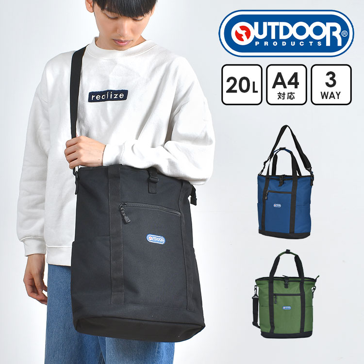 リュック 大容量 おしゃれ アウトドアプロダクツ OUTDOOR PRODUCTS メンズ ビジネス レディース 3way トートバッグ ショルダーバッグ バックパック リュックサック デイパック 高校生 大学生 男子 女子 軽量 通学 通勤 無地 20L A4 PCポケット 遠足 修学旅行 黒 紺色 緑