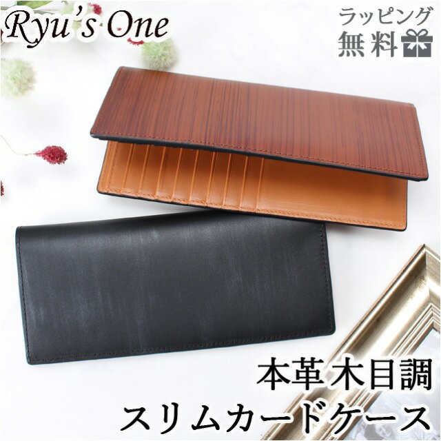 長財布 メンズ 本革 15-4041 Ryu's One リューズワン WD 折り長財布 小銭入れなし 木目調 カード入れ 牛革 財布 ビジネス レザー 革 ギフト プレゼント 男性 メンズ 通勤 旅行 ギフト ブラック ブラウン 黒 茶