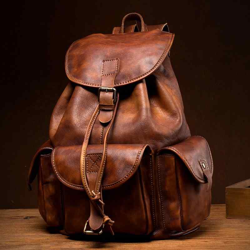 リュック レディース メンズ レザー 革 おしゃれ 鞄 パソコン 通勤 ビジネス レトロ 旅行 巾着 ブラウン ブラック
