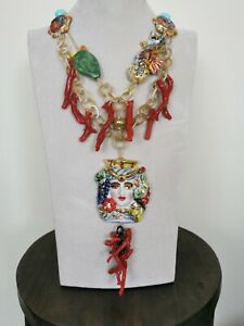 【送料無料】ジュエリー・アクセサリー コラーナセラミックスカルタジローネトゥルチェスエコラロロロッソcollana ceramica caltagirone , turchese e corallo rosso