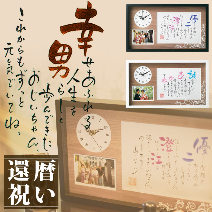 還暦祝い 長寿祝い 名前 ポエム 置き時計 写真立て プレゼント ギフト 記念品 還暦 時計 金婚式 銀婚式 喜寿 米寿 白寿 華甲 傘寿 半寿 卒寿 茶寿 女性 男性 名入れ ネームインポエム 送料無料【返品不可】