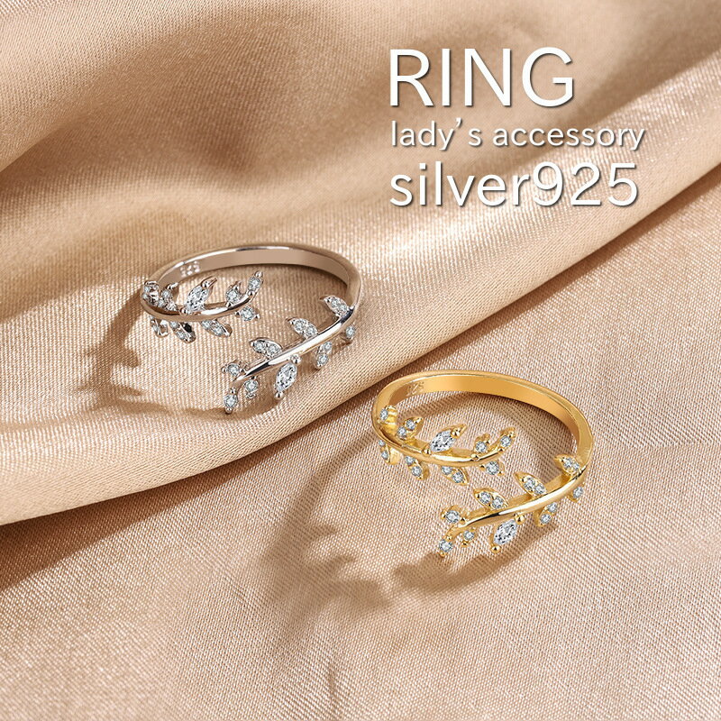 リング 指輪 リーフ フリーサイズ ジルコニア シルバー925 銀 ゴールド 金属アレルギー対応 アクセサリー レディース ジュエリー 重ね付け シンプル 華奢 おしゃれ 大人かわいい 人差し指 ノンブランド