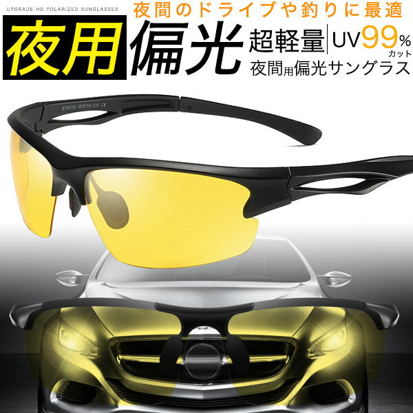 送料無料 夜用 偏光 スポーツ サングラス メンズ用 紫外線カット uvカット 男 男性 ノンブランド 運転 夜間走行 ドライブ 釣り 運転用 自動車 サングラス 鼻パッド 調整 シンプル 軽量 日常 普段使い デイリー 色付き イエロー 黄色 カラーレンズ 対向車のライト 直送w