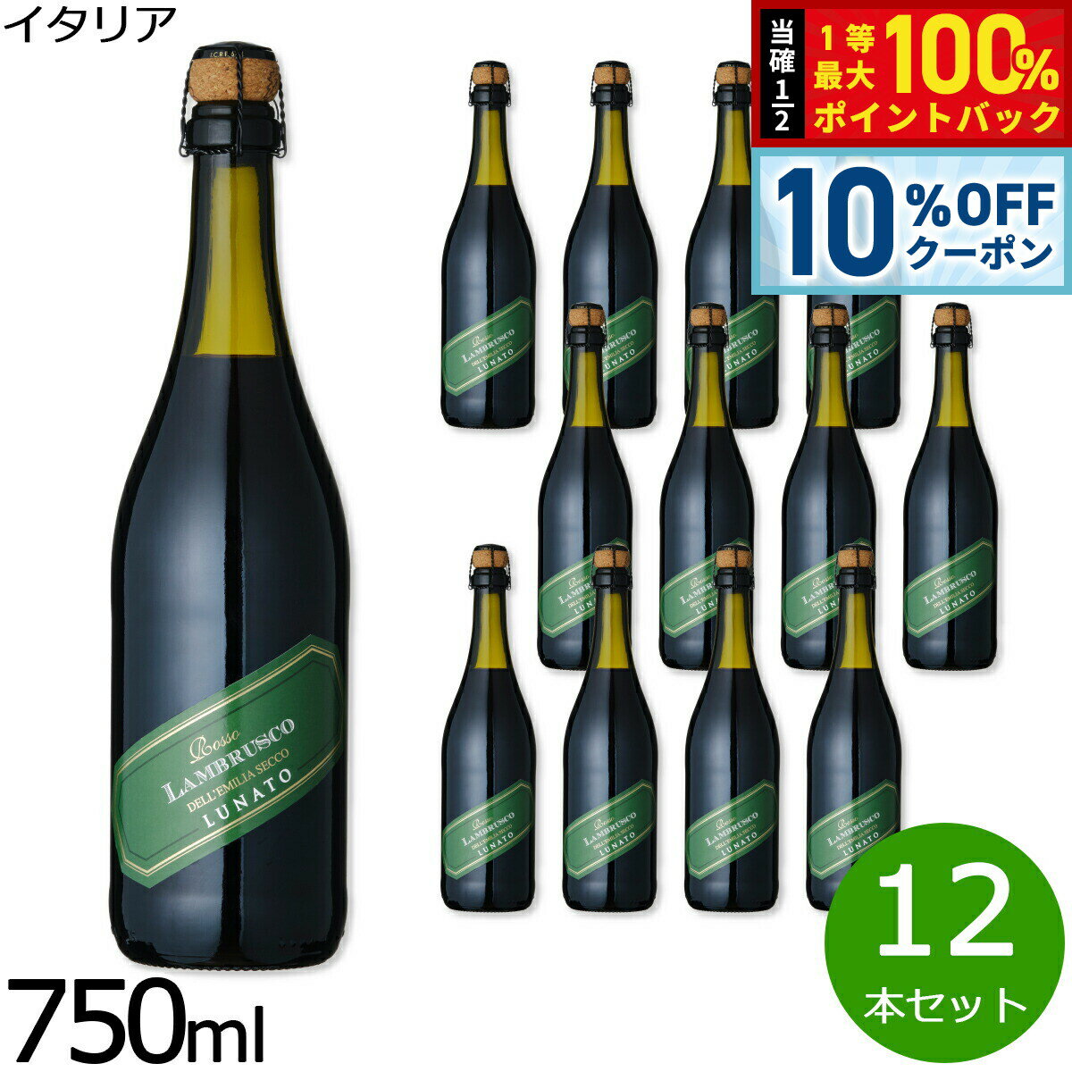 【1/5限定!10%OFFクーポン&抽選で最大10000ptバック】ルナート ランブルスコ デッレミーリア ヴィノ フリッツアンテ セッコ イタリア産 辛口 赤ワイン 微発泡 NV ノン ヴィンテージ 750ml×12本【送料無料】