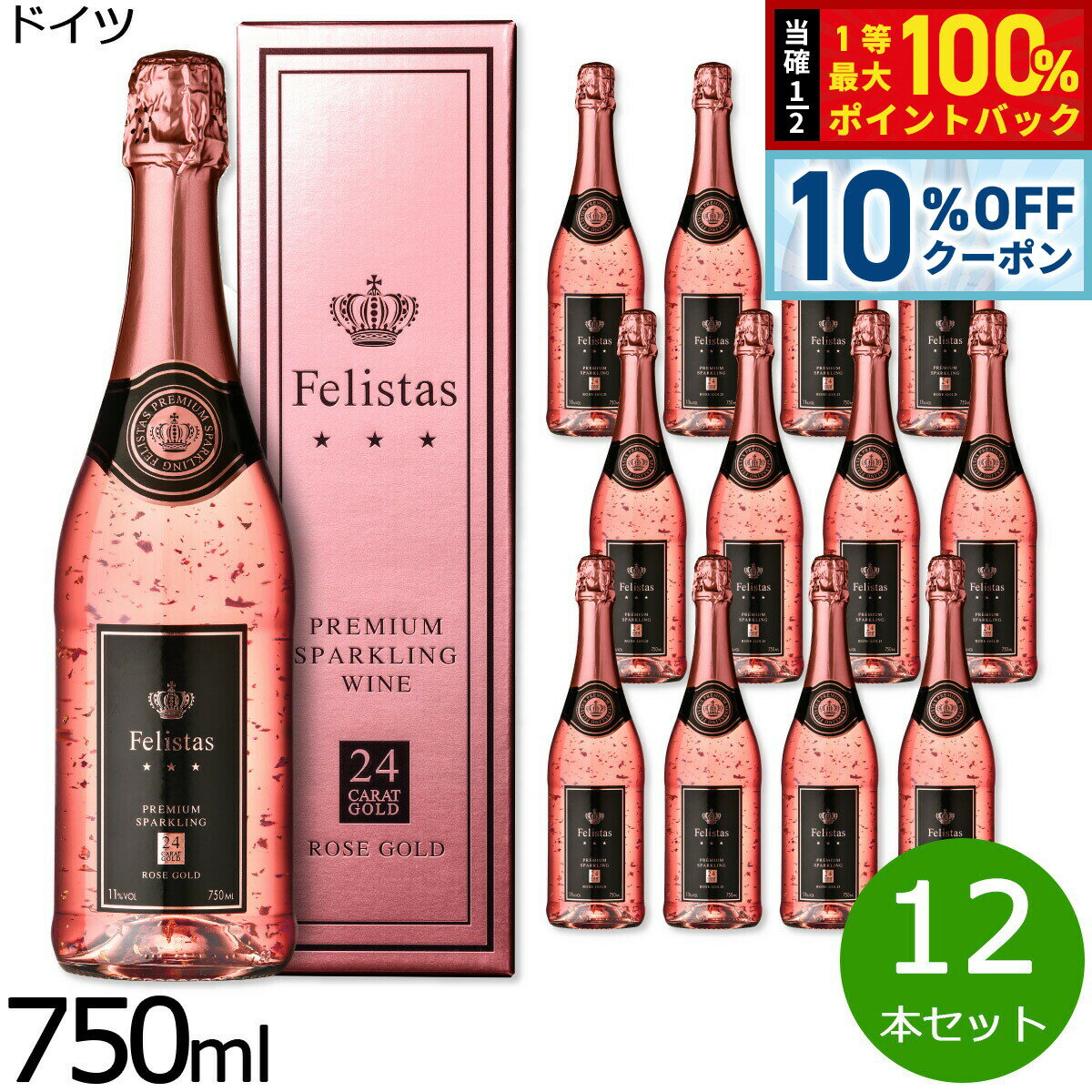 【1/5限定!10%OFFクーポン&抽選で最大10000ptバック】フェリスタス ロゼ ゴールド 金箔入りスパークリングワイン ギフトBOX入り 箱入り ドイツ産 辛口 ロゼワイン ドイツワイン 泡 ドイツ NV ノン ヴィンテージ 750ml×12本【送料無料】