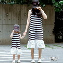 親子ペアルック 家族ペアルック ノースリーブボーダーワンピース 母娘 レディース 女の子 子ども服80 90 110 120 130 140 M