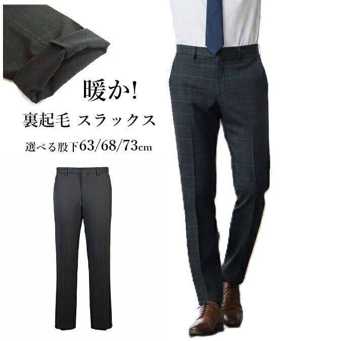 【メンズ】暖か!裏起毛 定番柄 スラックス 紳士 ボトム ノータックパンツ 選べる股下63/68/73cm(S|M|L|LL)ヘリンボーン・格子柄 2色 洗濯機OK 自宅で洗える ビジネスパンツ 裾上げ済みスラックス ウエストゴム