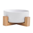 Naughty Angel ペット フードボウル ボウル 猫 犬 ウォーターボウル 猫用フードボウル 陶器 食器 餌入れ 水入れ 安定感 子犬 子猫 木製ボウルスタンド付 11cm (ホワイト)