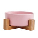 Naughty Angel ペット フードボウル ボウル 猫 犬 ウォーターボウル 猫用フードボウル 陶器 食器 餌入れ 水入れ 安定感 子犬 子猫 木製ボウルスタンド付 11cm (ピンク)