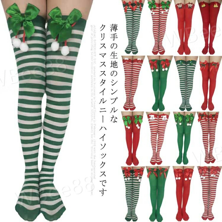 クリスマス ニーハイ ソックス ボーダー コスプレ 道具 靴下 サンタ サンタクロース くつ下 大人用 リボン 仮装 コスプレ衣装 薄手 赤 レッド グリーン コスチューム 送料無料