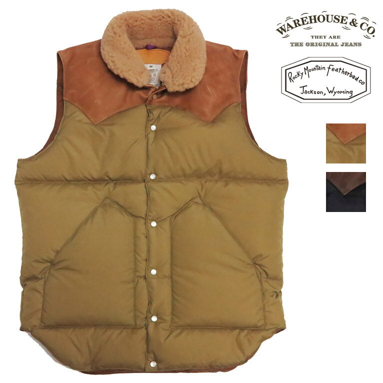 ウェアハウス WAREHOUSE ロッキーマウンテン フェザーベッド ROCKY MOUNTAIN FEATHERBED ナイロン ダウンベスト ホースハイド レザーヨーク NYLON DOWN VEST ホワイトダックダウン WH2234 【2025年秋冬新作】