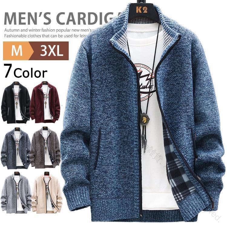 【送料無料】メンズ アウター 防寒 ニットカーディガン 冬服 厚手 裏起毛 無地 ビジネス カジュアル ハイネック スタンドカラー 暖かい 秋冬 ニットジャケット 秋服 おしゃれ 大人 ジップアップ ジップニット 30代 40代 50代 ファッション