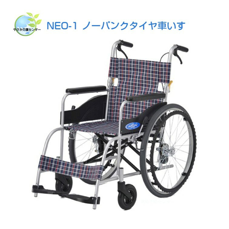 【自走用車いす NEO-1 ノーパンクタイヤ】日進医療器 自走型 自走用 車いす 車椅子 車イス 軽量 軽い チェック 前座高430mm 重量12.7kg 座幅40cm 22インチハイポリマータイヤ ノーパンク