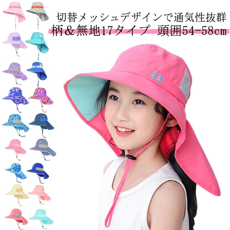帽子 キッズ キッズ帽子 ハット 夏 サンハット メッシュ 速乾 撥水 UPF50+ 冷感 長つば つば広 あご紐付き ネックカバー 首筋カバー 防風 折り畳み サイズ調整 日焼け 陽射し 日よけ UV 紫外線対策 UVカット 無地 柄 可愛い