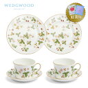 ウェッジウッド ワイルドストロベリー ハニーセット(ティーカップ&ソーサー(ピオニー)×2、18cmプレート×2)/ おしゃれ ブランド 食器 ギフト プレゼント 結婚祝い 内祝