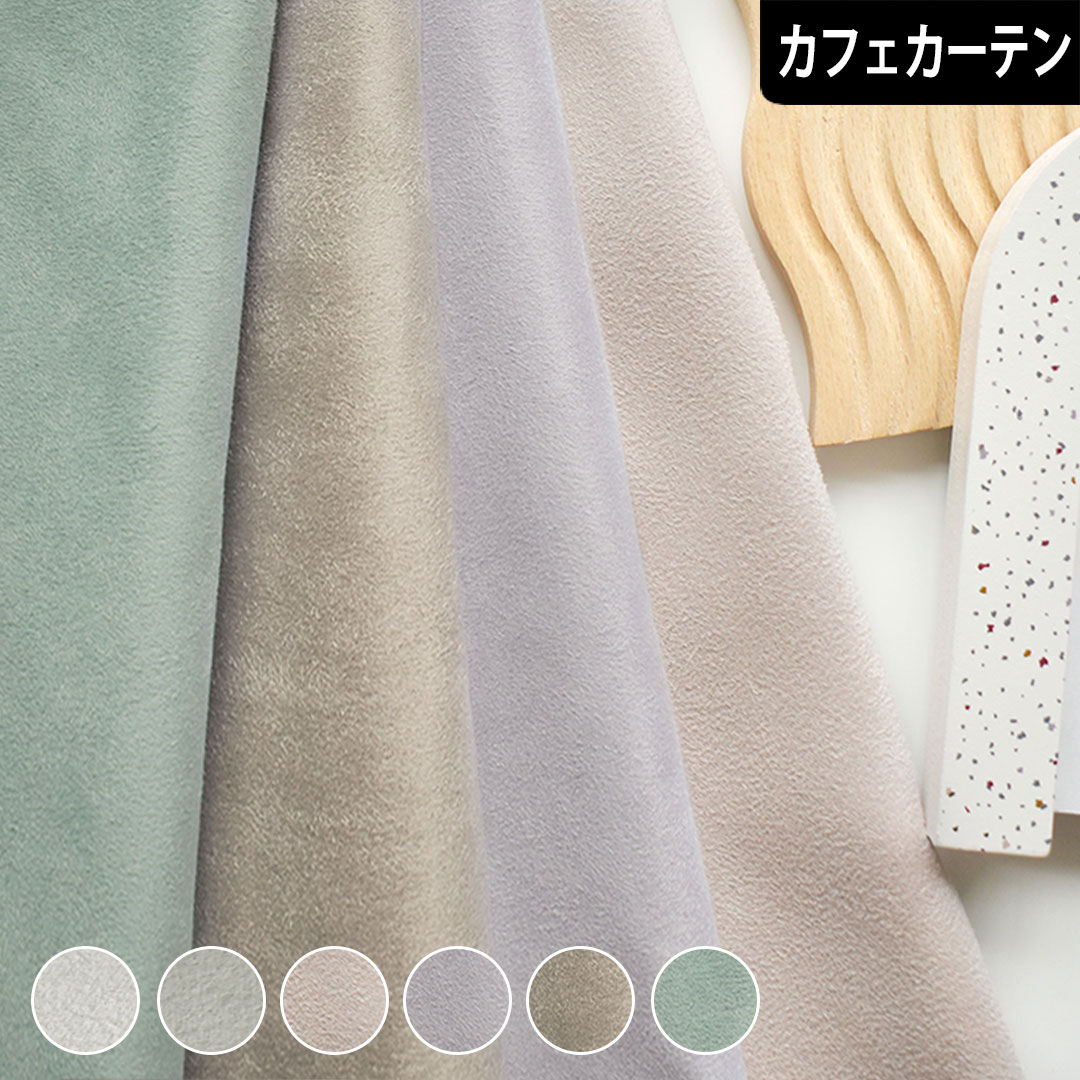 【カフェカーテン】ハヌル|遮光・防炎 6色から選べる、ふわっ!もちっ!とした 柔らかな手触りの遮光・防炎カフェカーテン 生地を起毛させているのでふっくらと柔らかな風合いです。 ベロア調な生地感に仕上がるので、高級感があります。 遮光生地なので日差しが強い小窓にもおすすめです。 肉厚な生地なのでもちっとした触り心地がくせになります。 優しい色合いは韓国インテリアのお部屋にぴったりです。 防炎付きなのでもしもの時も安心です。 やみつきになる「ふわっ!もちっ!」な手触りをサンプル生地でぜひ体感して下さい! --商品説明------Spec---- 【 商品名 】 【カフェカーテン】ハヌル 【 カラー 】 ホワイト(2級遮光) グレー(1級遮光) ピンク(2級遮光) パープル(1級遮光) ブラウン(1級遮光) グリーン(1級遮光) 【 素材 】 ポリエステル 100% 【 種類 】 ◆フラットタイプ(上部フリルなし) 1cmきざみ ◆ステッチタイプ(上部フリルあり) 1cmきざみ 【 お取り扱い 】 洗濯ネットに入れて洗濯機のドライコースで洗えます。 アイロンは80〜110℃の低温でかけてください。 【 ご注意 】 幅140cm以上の場合つなぎ目が入ります。あらかじめご了承ください。
