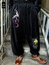 【雅結 -IMY-】“レントゲン鳥獣戯画” ちりめん 切替 ベロア素材 サルエルパンツ | 和柄 ボトム ずぼん ワイドパンツ ハマーパンツ 通販 メンズ レディース ユニセックス 秋 秋服 冬 冬服 黒 ブラック 紫 パープル M L 大きいサイズ