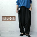 大きいサイズ レディース ボトムス パンツ ハマーサルエルパンツ サルエルパンツ ロングパンツ ハマーパンツ サルエル ロング アラジン ポケット ウエストゴム ストレッチ 伸縮 変形 長ズボン 無地 冬新作 春服 夏服 秋服 冬服 LL 2L 3L 4L 5L ブラック 黒 韓国ファッション