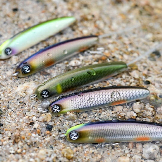 オーバスライブMTペンシルスリム ハンドメイドモデル■Weight (フックリング無し) シンキング:約7g フローティング:約6g ■Length 68mm ■Action I字・可変ウォブンロール ■Tackle UL-MLロッド PE0.4-0.8+8lb-14lb巻き速度で、i字からミノーみたいな動きの変化がつけれるた為、同タイプのルアーで攻められ倒した後でも食わせのタイミングが作りやすいルアーです。 強風下でもカップのおかげで完全なノー感じにならないのも他にはないメリットです。
