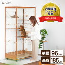 猫 ケージ 3段 2段 木製 キャスター スライドドア ワイド 96cm 多頭飼い ハンモック ステップ 掃除簡単 猫砂飛散防止フェンス ieneko デザイナーズ猫ケージ いえねこ イエネコ 家猫