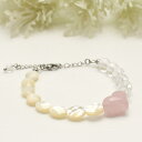 パワーストーン 天然石 1点物 大きなハートが可愛い ローズクォーツ & カットホワイトシェル & クリスタル 選べる脱着式パーツ誕生石 ガーネット アメジスト アクアマリン エメラルド ラピスラズリ シトリン タンザナイト 刻印プレート / レディース ギフト MAHALO【M_06】
