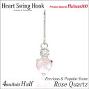 プラチナ900 ピアス Pt 900 4mm ハート ローズクォーツ & キュービック スイング フック 片耳用 金属アレルギーに優しい fourm クリスマス ギフト 母の日 レディース メンズ 男性 女性 ラッピング 包装 袋 誕生日 プレゼント ケース 箱 華奢 可愛い おしゃれ
