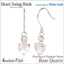 K10ホワイトゴールド ピアス K10WG 4mm フックピアス ハート ローズクォーツ & キュービック 両耳用 金属アレルギーに優しい fourm クリスマス ギフト 母の日 レディース メンズ 男性 女性 ラッピング 包装 袋 誕生日 プレゼント ケース 箱 華奢 可愛い おしゃれ