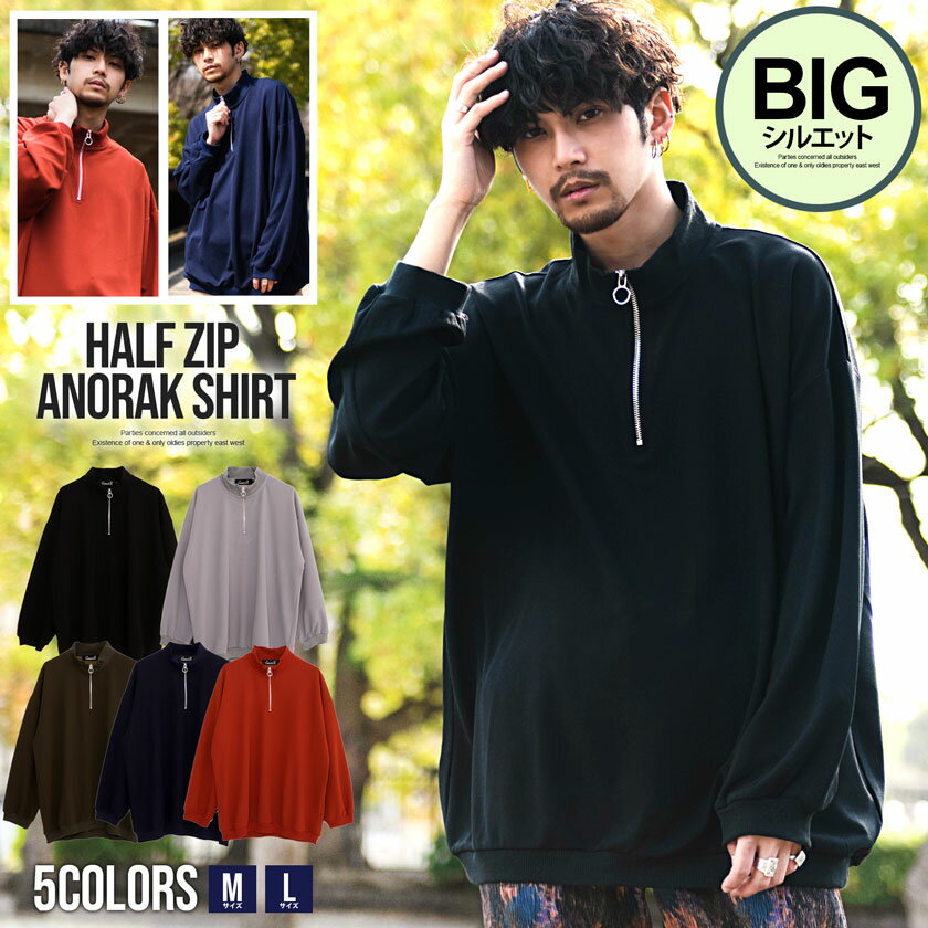 トレーナー メンズ ブランド アノラックシャツ ビッグシルエット スタンド襟 ハーフジップ 大人 おしゃれ カジュアル スエット スウェット 無地 シンプル アノラック CavariA 大人 20代 30代 40代 50代 ちょいワル ユニセックス 男性 男 服 秋 冬 秋冬 ファッション