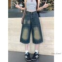 デニムハーフパンツショートパンツレディースウエストゴムシンプル大きいサイズワイドパンツボトムス