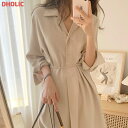 ops レディース 韓国ファッション シャツワンピース 長袖 ロングワンピース テーラード ストラップセット プチプラ シック フェミニン 大人 カジュアル オフィス オケージョン お出かけ 春 秋 v90001