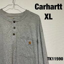 【中古】Carhartt Tシャツ 長袖 XL グレー ハーフボタン ロンT ワンポイント オリジナルフィット カーハート RN14806 古着 TK11590