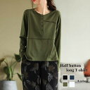 【\クーポン利用で20%OFF!/】 Tシャツ レディース ハーフボタンロングTシャツ カットソー コーデ 暖かい おしゃれ カジュアル トレーナー ロゴ ゆったり 長袖 春 綿 キャンバー ブラウス かわいい 秋 冬 ブラック Vネック ブランド 大人 シャツ 40代 厚手