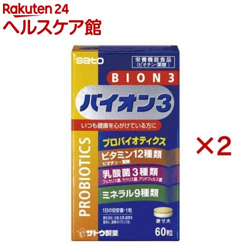 ★2個セット★サトウ製薬BION3 60粒×2個 (バイオンスリー)バイオン3はプロバイオテクス乳酸菌【s-s1】【co-1】
