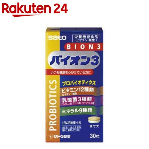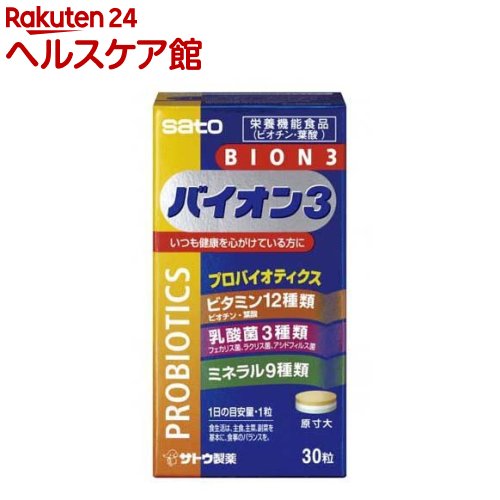 サトウ製薬BION3 30粒(バイオンスリー)バイオン3はプロバイオテクス乳酸菌★で送料無料★ 【RCP】【コンビニ受取対応商品】【co-1】