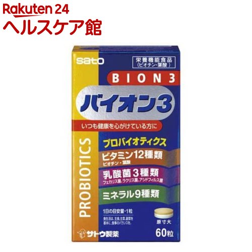 サトウ製薬BION3 60粒(バイオンスリー)バイオン3はプロバイオテクス乳酸菌 【RCP】【コンビニ受取対応商品】