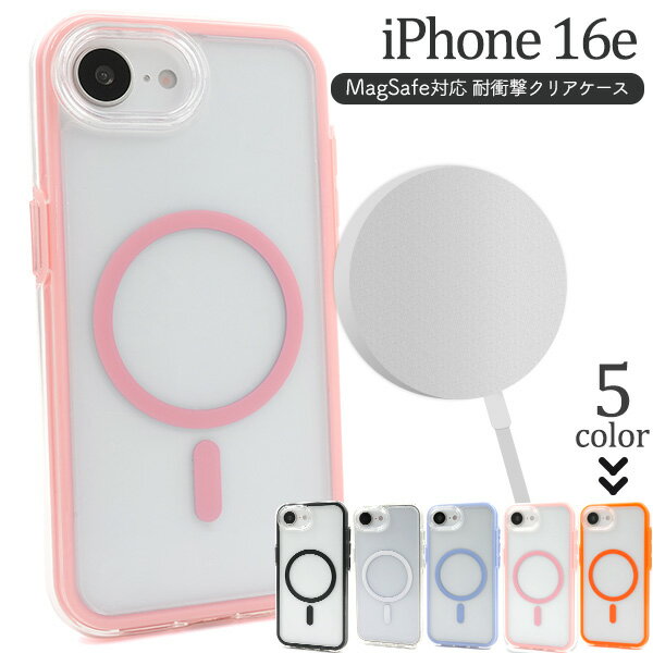 耐衝撃 【iPhone 16e用 MagSafe対応 ケース】 クリア 透明 背面PC 側面ソフトTPU スマホ 保護 バックカバー シンプル おしゃれ かわいい ピンク 黒 青 白 オレンジ エアクッション 磁石 iPhone16e アイホン16e 【送料無料】 [M便 1/3]