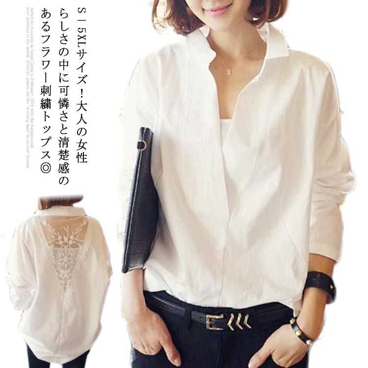 S−5XLサイズ!大人の女性らしさの中に可憐さと清楚感のあるフラワー刺繍トップス◎バックに上品な透け感あるレースが大人っぽく、着るだけで華やかさUP!全体にゆったりとしたサイズ感が体型も問わず、着こなし抜群。シンプルなコーデにも華が加わる今季おすすめのアイテムです☆ サイズS M L XL 2XL 3XL 4XL 5XLサイズについての説明S バスト88 袖丈42 前丈65 後ろ丈74 M バスト92 袖丈43 前丈66 後ろ丈75 L バスト96 袖丈44 前丈67 後ろ丈76 XL バスト100 袖丈45 前丈68 後ろ丈77 2XL バスト104 袖丈46 前丈69 後ろ丈78 3XL バスト108 袖丈47 前丈70 後ろ丈79 4XL バスト112 袖丈48 前丈71 後ろ丈80 5XL バスト118 袖丈49 前丈72 後ろ丈81素材ポリエステル色ホワイト備考注意★洗濯時、色落ちがございます。他の物とのお洗濯もお控えくださいませ。湿気を含んだ状態や水を含んだまま放置しないでください。この製品は洗濯で若干縮むことがあります。洗濯機は使用できません。※ベージュ×モカのみ使用糸の関係上、風合いが少々異なります。 ●綿混合商品は洗濯時に多少縮む事がございます。 ●本製品は生産過程におきまして、生地を織る際の糸の継ぎ目や多少のほつれが生じることがありまが、品質上は問題ありません。また、生地の織りに他繊維が混紡している場合もございます。▼色落ちの恐れがございますので、他のものとは分けて洗濯してください。▼タンブラー乾燥はお避け下さい。▼洗濯の際は他の物と区別して、漂白剤を避け、手洗いを お勧めします。