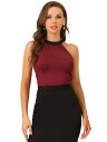Allegra K タンクトップ ホルターネック ヒョウ柄 キーホールバック スリム ストレッチ レディース ワインソリッド S