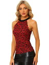 Allegra K タンクトップ ホルターネック ヒョウ柄 キーホールバック スリム ストレッチ レディース 赤ヒョウ XS