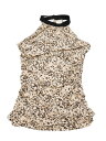 Allegra K タンクトップ ホルターネック ヒョウ柄 キーホールバック スリム ストレッチ レディース ベージュ ヒョウ柄 S