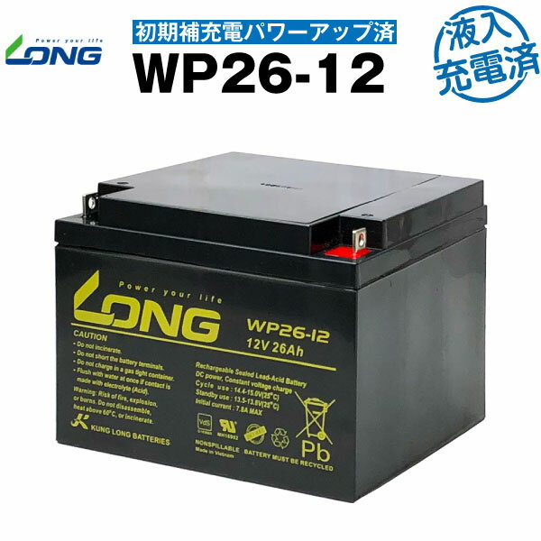 WP26-12・初期補充電済(産業用鉛蓄電池)【サイクルバッテリー】NP26-12B互換【新品】■■LONG【長寿命・保証書付き】セニアカー 電動カート 農業機械 ソーラーシステム など対応