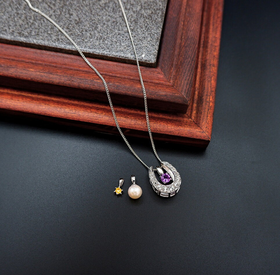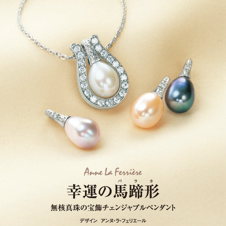 幸運の馬蹄形(バラカ) 無核真珠の宝飾 チェンジャブルペンダント [Z0852] レディースジュエリー 馬蹄 ホースシュー モチーフ 淡水 真珠 パール ダイヤモンド ダイヤ キュービック ジルコニア プラチナ 仕上げ シルバー 925 レディース ネックレス