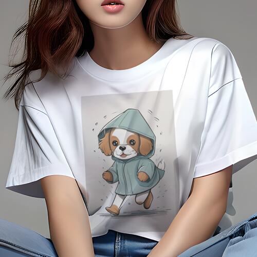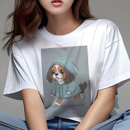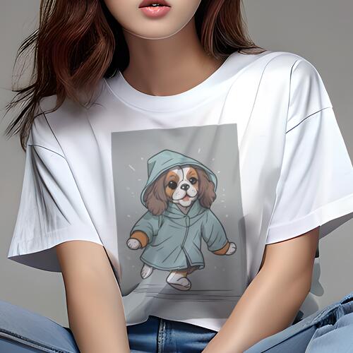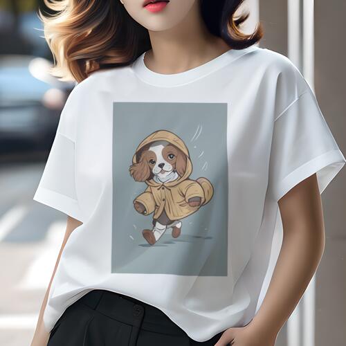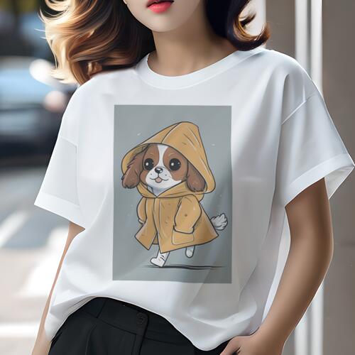 キャバリア Tシャツ レディース 犬ファン 半袖 春夏 犬柄 プリント カジュアル かわいい 人間用 個性派 ここだけのデザイン 面白 レインコート キャバリア フード