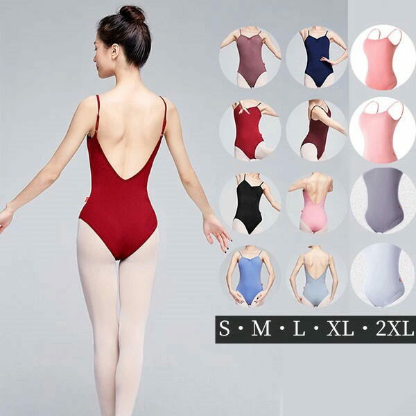 全12色 バレエ レオタード 大人 おしゃれ キャミソール ダンスウェア 大きいサイズ レッスン着 背中空き ジュニア 韓国風 バレエダンス 練習着 演出用 ダンス服 パット付き ブラック 黒 水色 ワインレッド 紫 ピンク S M L XL 2xXL