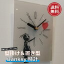 バンクシー アクリル時計 アートパネル アートフレームおしゃれ インテリア モダンインテリアアートモノトーン モノクロ 壁掛け 置き型スタンド付き